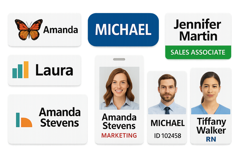 Personalize each tag with names, logos, titles, and full-color graphics to match your