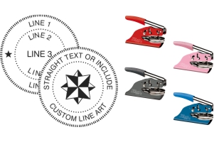 Create a custom round embosser using our designer. Just type out your text, upload images, or combine both to create a 100% unique embosser.  Use for embossing wedding invitations, personal seals, books, and more. These long lasting embossers will give you professional results every time. See more details below...