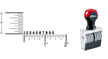 When you need the exact size for an area, these Shiny traditional band stamps will be the right fit. Select from the number of bands you need and then choose the height of the stamp. Each band includes a standard set of numbers plus additional special characters for denoting currency type, weight, percentage and more. Shiny traditional band stamps are for use with a stamp pad so you can find the right ink for your surfaces. Here are some of the top features of our Shiny traditional number stamps:
